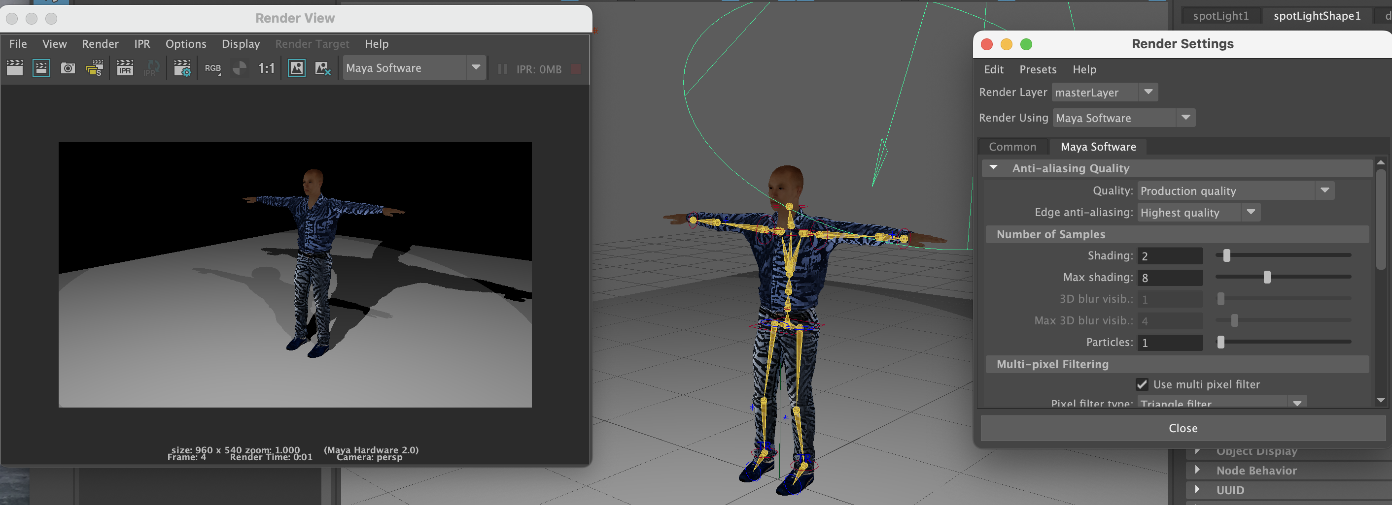 Figure 10: Maya Quick-Rigged Character in Maya made without combining Mesh surfaces.