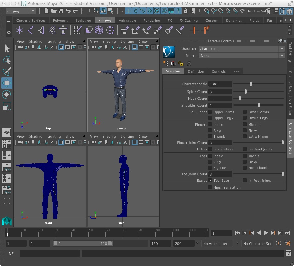 A scripting alternative is also available developed by Jeroen Hoolmans on GitHUB and that allows you to skip MotionBuilder altogether. The Python script developed by Hoomans in 2012 can be run inside of Maya on the Mac or Windows operating systems. (This technique was tested a number of times and was less complete in terms of the skeleton generated and led to some problems in full rigging in Maya. However, it was partially effective and may be a quick alternative.