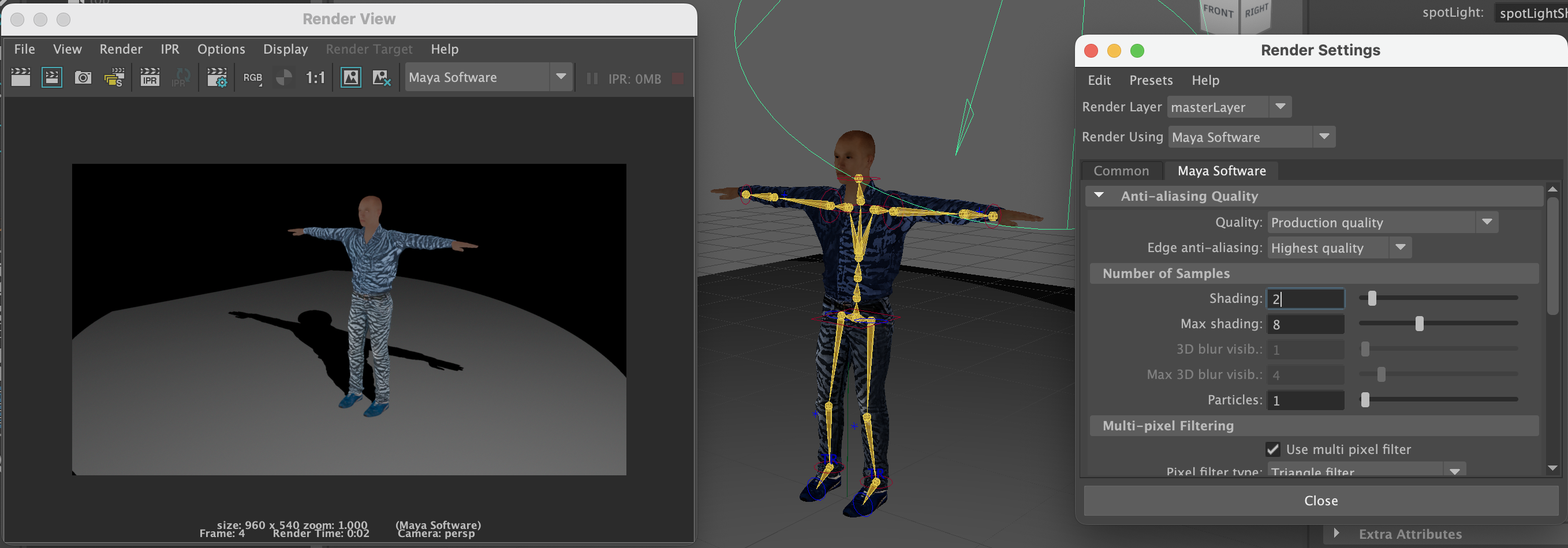 Figure 10: Maya Quick-Rigged Character in Maya made without combining Mesh surfaces.