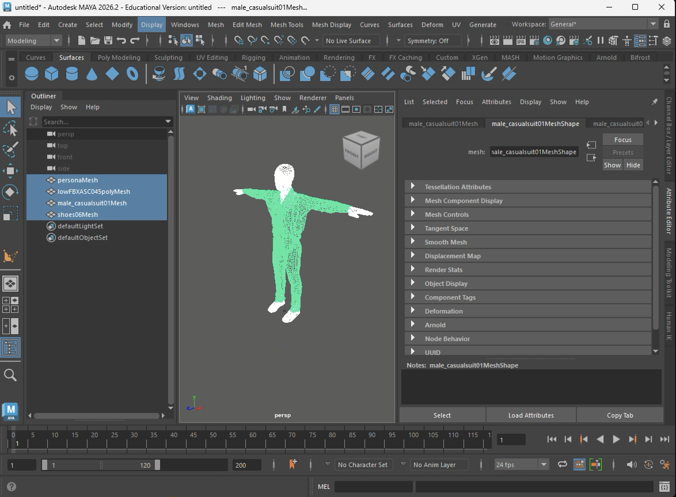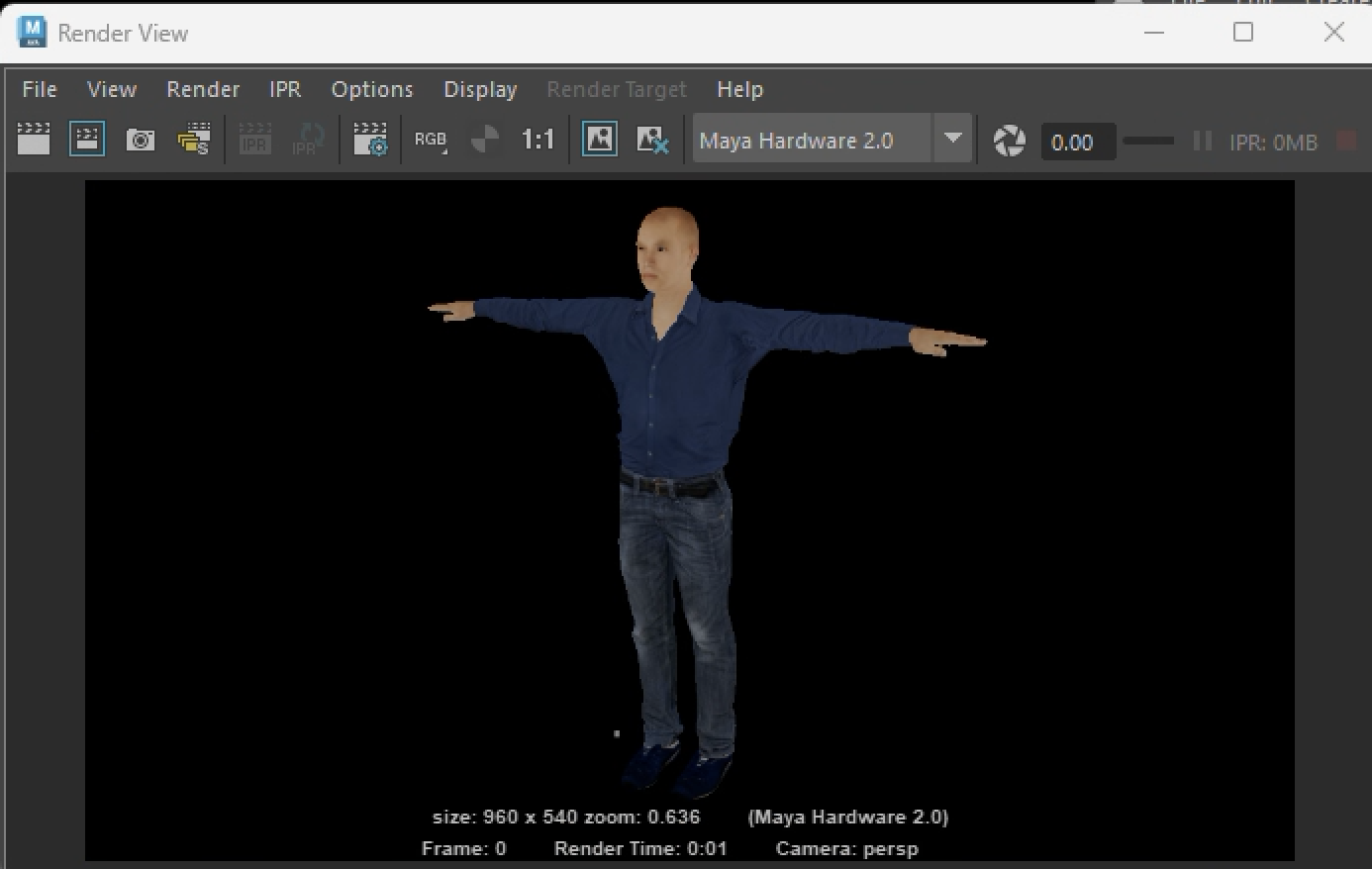 Figure 1. Imported FBX file from MakeHuman into Maya.