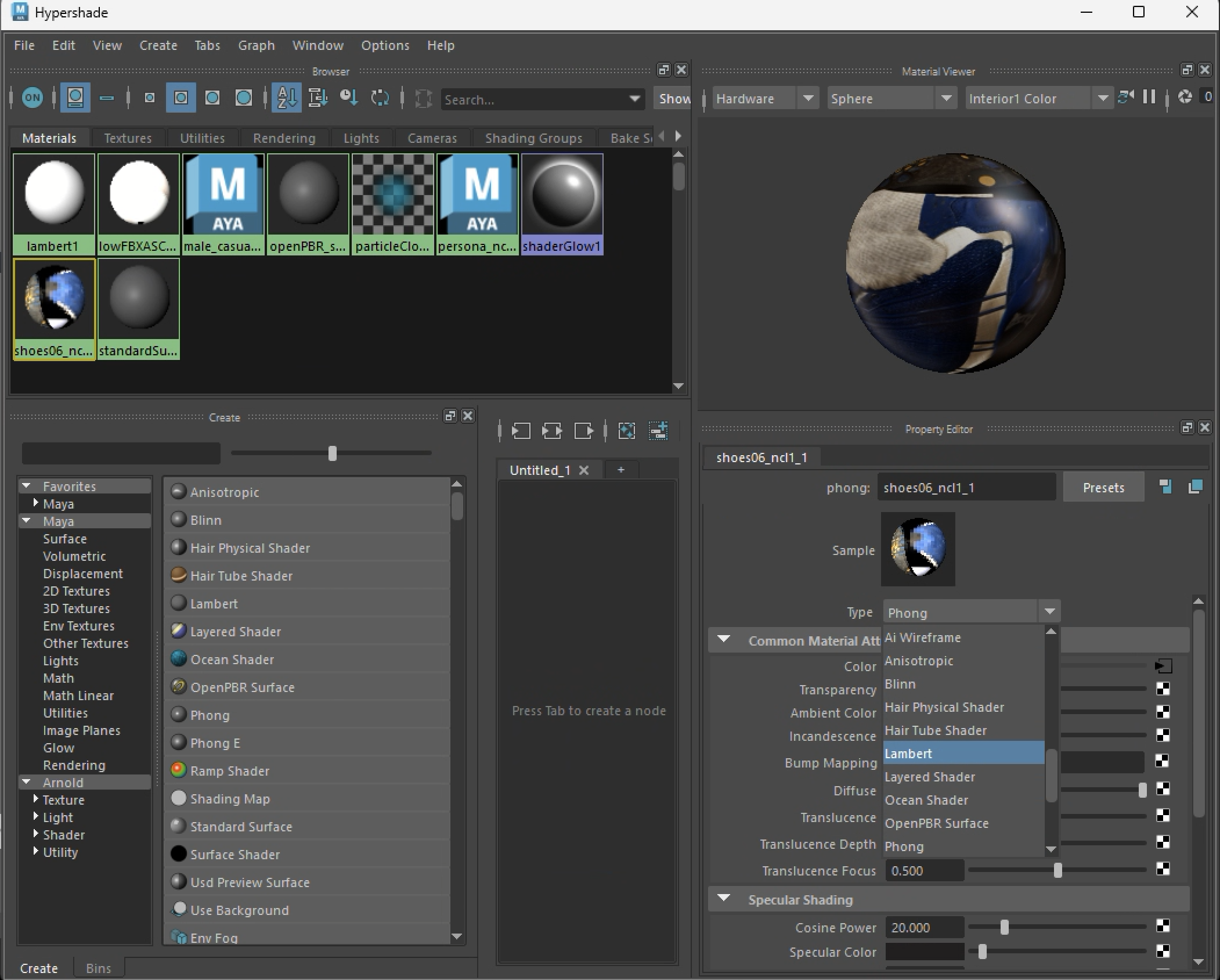 Select the word Phong, and in the pop-up menu, choose Lambert (Figure 6).