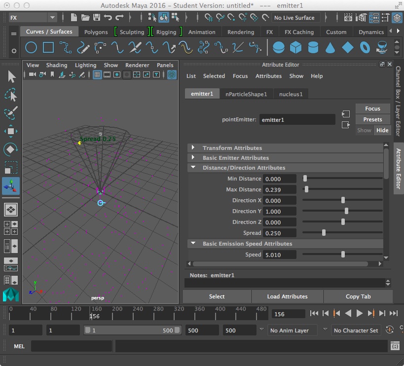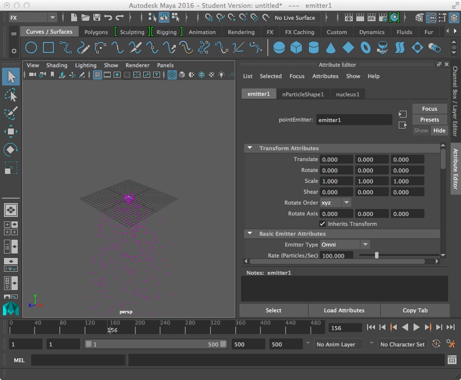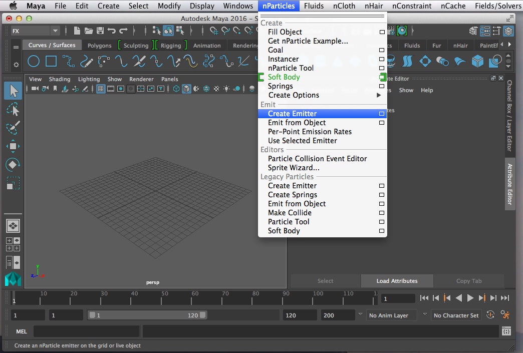 Next, go to the nParticles menu again and choose "Create Emitter".