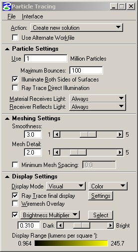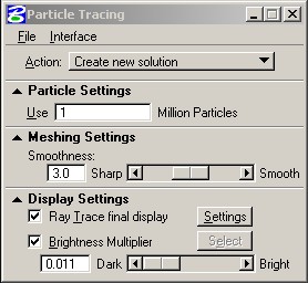 | Particle Tracing | Particle Tracing and Sunlight Interior 1 million particles with 100 bounces |